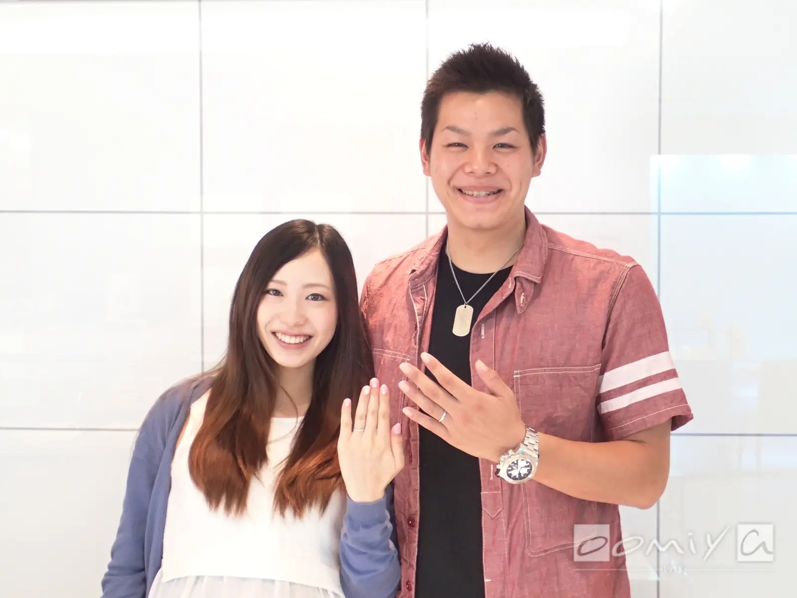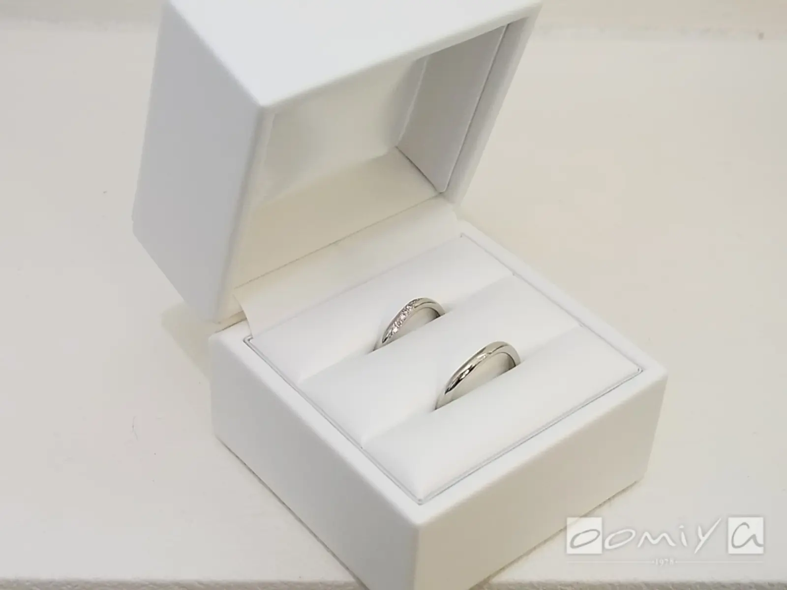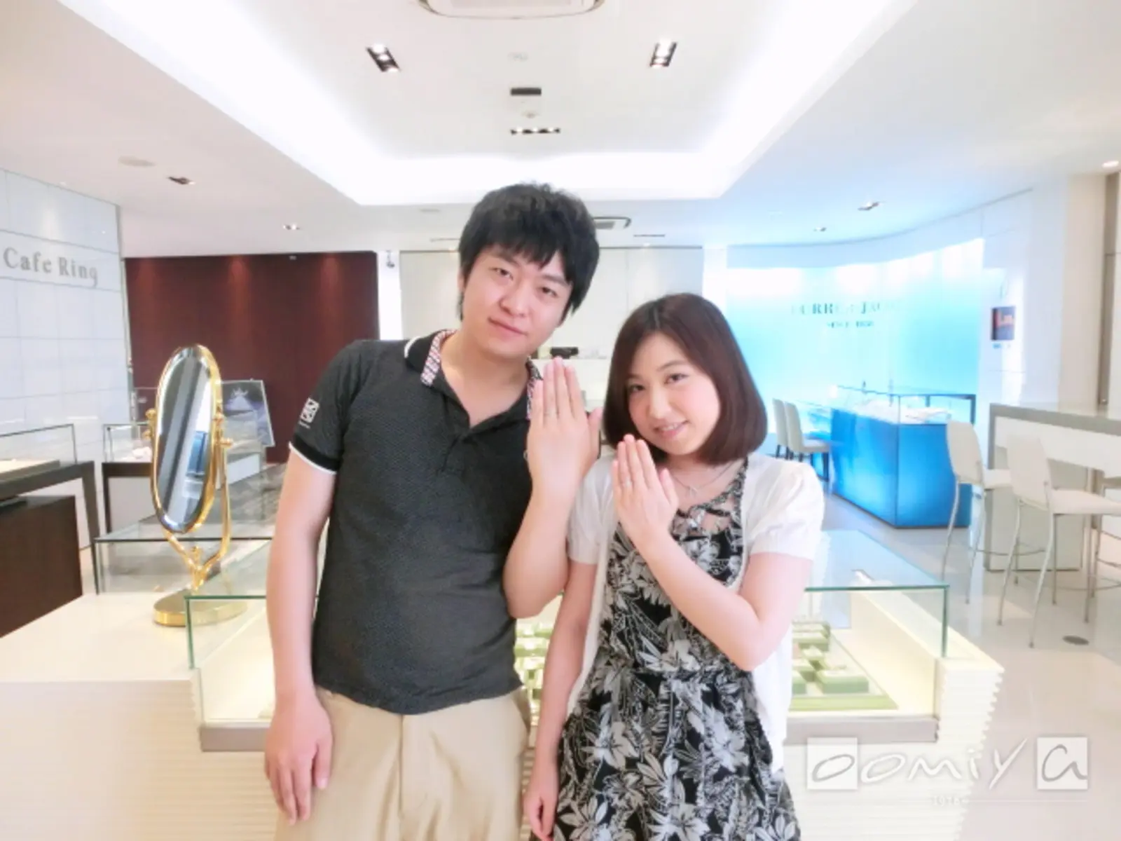 oomiyaさんで時計を購入した事があり、スタッフの方の丁寧な対応が印象に残っていたので、指輪も必ずココでと思っておました。丁寧な対応で、色々なブランドの中から自分達の理想の指輪を見つける事ができました。