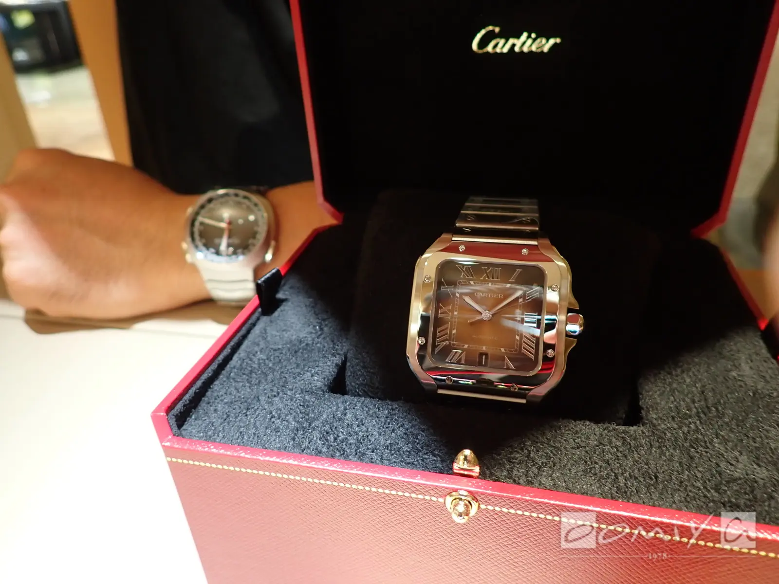 新型のサントスウォッチのサイズ感や厚みが私の腕にぴったりでした。