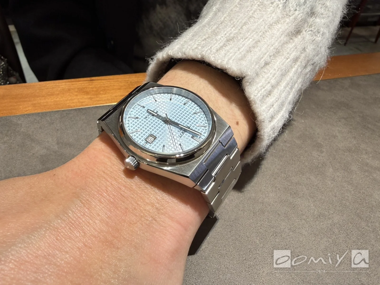気になっていたティソ ジェントルマンのチタングレーを試着させてもらい、質感やフィット感もしっかり確認できました。
