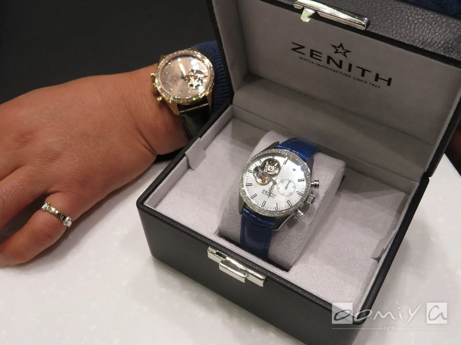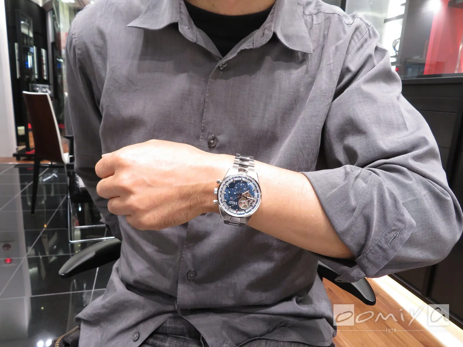 大きなフェイスとダイヤのキラキラがすごく気に入っています。シルバーグレー?の色もキレイで、いい時計に出会えました。ゼニスは初めてですが、これからは要チェックブランドです。