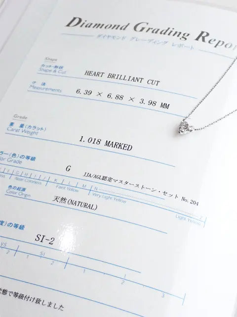 石 ダイヤモンド(1.018ct) その他特徴 鑑定書付き - 注意事項