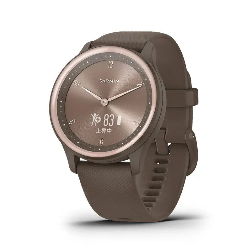 「vívomove Sport」はスタイリッシュなウォッチです。このハイブリッドスマートウォッチは、アナログの外観と、ペアリングしたスマートフォンからのテキストメッセージを手元に届けるなどのスマート機能を持ち合わせています。また、アナログ針の動きを再現し、隠れたタッチスクリーンもあわせ持っています。