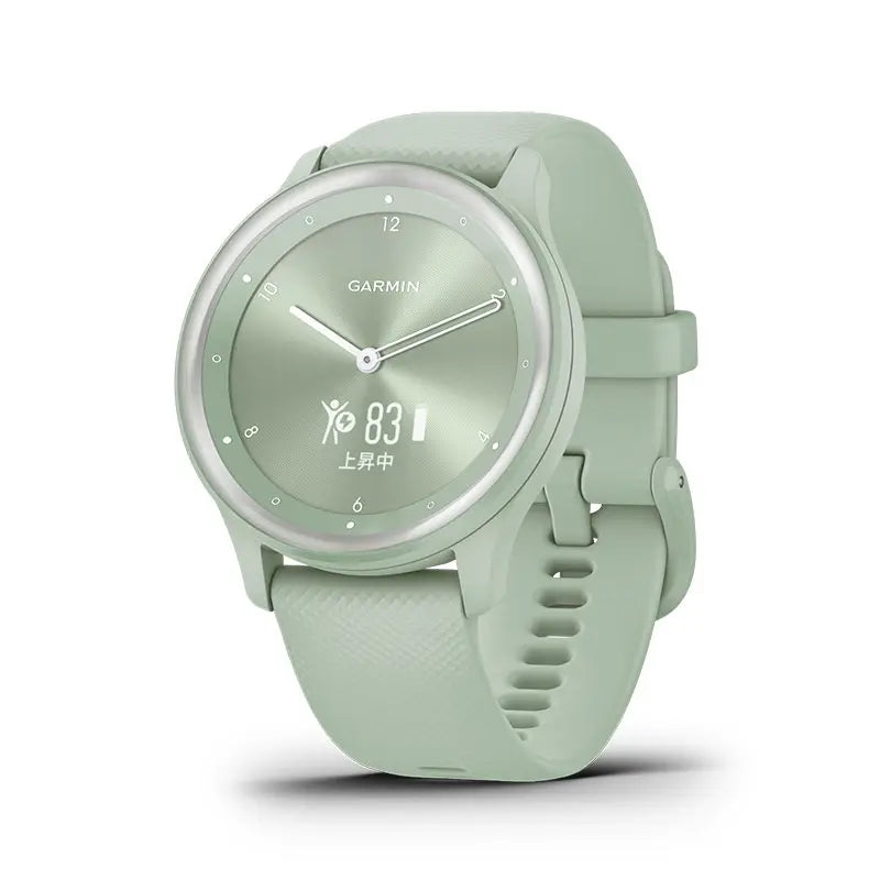 「vívomove Sport」はスタイリッシュなウォッチです。このハイブリッドスマートウォッチは、アナログの外観と、ペアリングしたスマートフォンからのテキストメッセージを手元に届けるなどのスマート機能を持ち合わせています。また、アナログ針の動きを再現し、隠れたタッチスクリーンもあわせ持っています。
