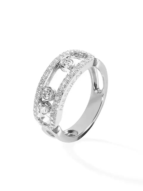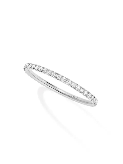 すべてが手作業で作られ、ブリリアントカット ダイヤモンドをちりばめた18Kホワイトゴールド パヴェ マリッジリング。「ギャツビー」 コレクションは、ゴールドが存在感を主張しすぎず、ダイヤモンドのピュアな気高さを引き立てます。やわらかな反射光を持つホワイトゴールドはデザインを引き立て、石の輝きを高めます。ウェディングなどかけがえのない瞬間にもふさわしく、定番としても身につけられる、ラグジュアリーなジュエリーです。