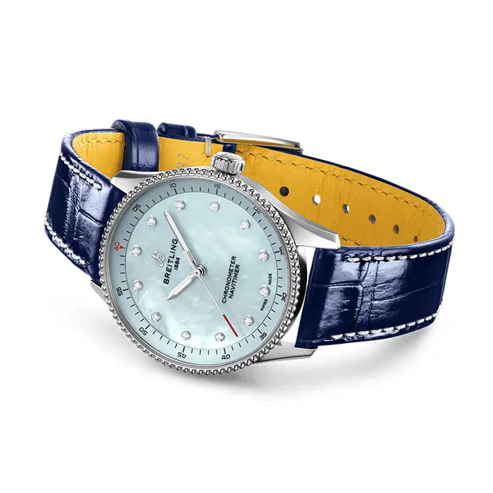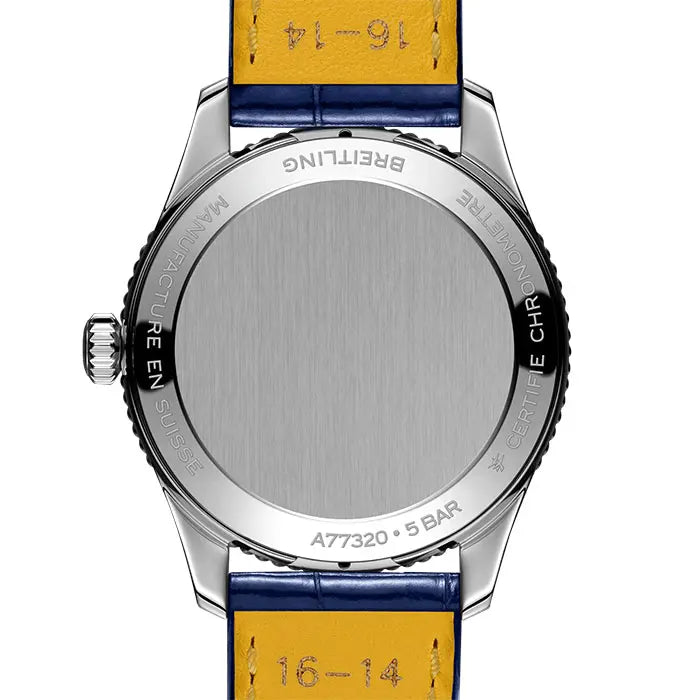 この時計を駆動するのは、ブライトリング キャリバー77。高精度のスーパークォーツ™ムーブメントは、ブライトリングのすべてのクォーツキャリバーと同様にCOSC公認です。そして、このサイズの時計として優れた5気圧の防水性も備えています。 - 仕様