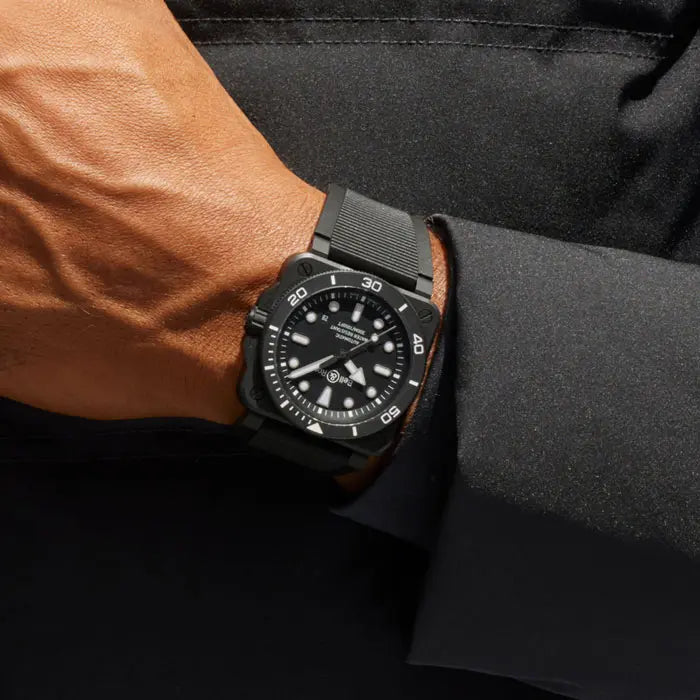 ベル&ロスは卓越性を追求し、自社工房にて独自のハイテクセラミック製作方法を開発し完成させました。耐傷性、快適な装着感、ソフトな手触り、体温調節機能を備えたこの素材の本質的な特性をさらに高めています。 - 仕様